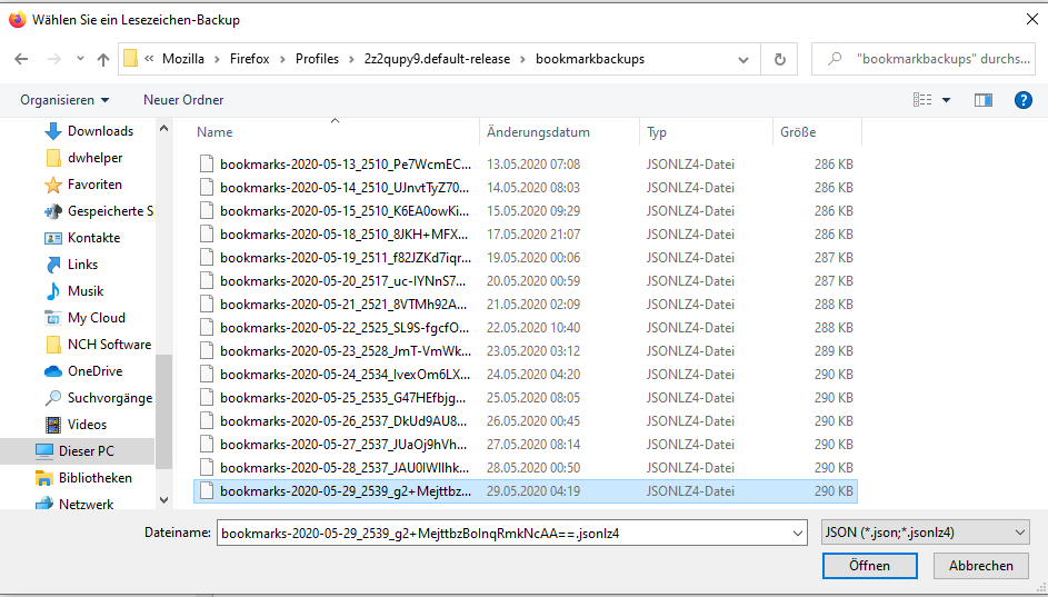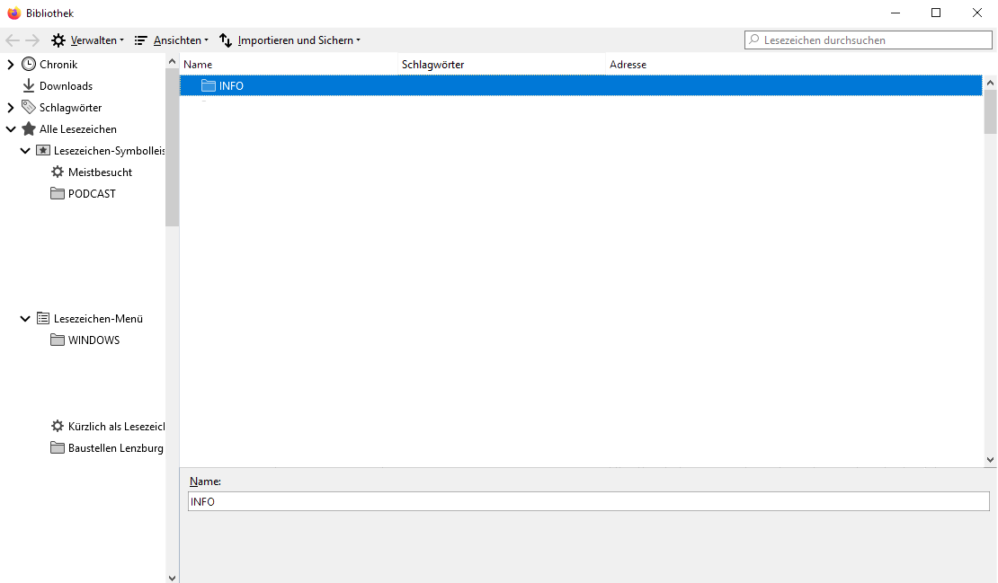 Anleitung Favoriten für Firefox auf Windows 10 wieder herstellen.